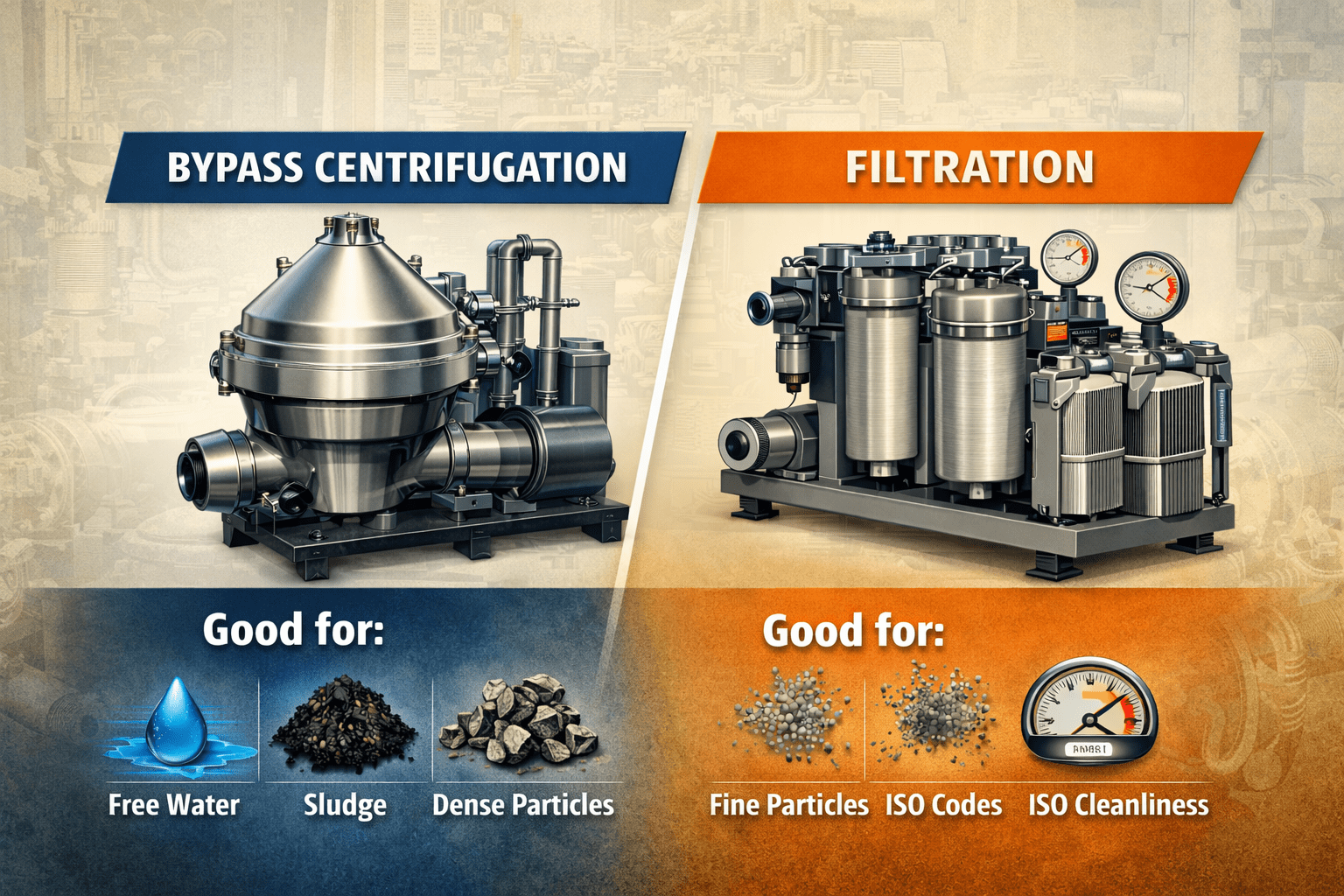 Hydraulic Oil Cleanliness Programs: Bypass Centrifugation vs. Filtration—What Each Removes