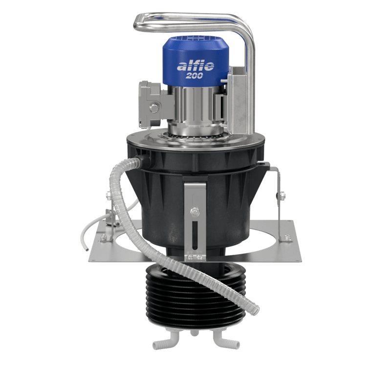 Alfie 200 is specially designed to remove contaminants from metalworking coolants and wash fluids. Alfie 200 is a small, compact unit, mounted on a frame and equipped with a plate allowing for a bolt-on connection to the fluid tank. Below the separator is a bellows that automatically adapts the inlet to the level of fluid in the tank.